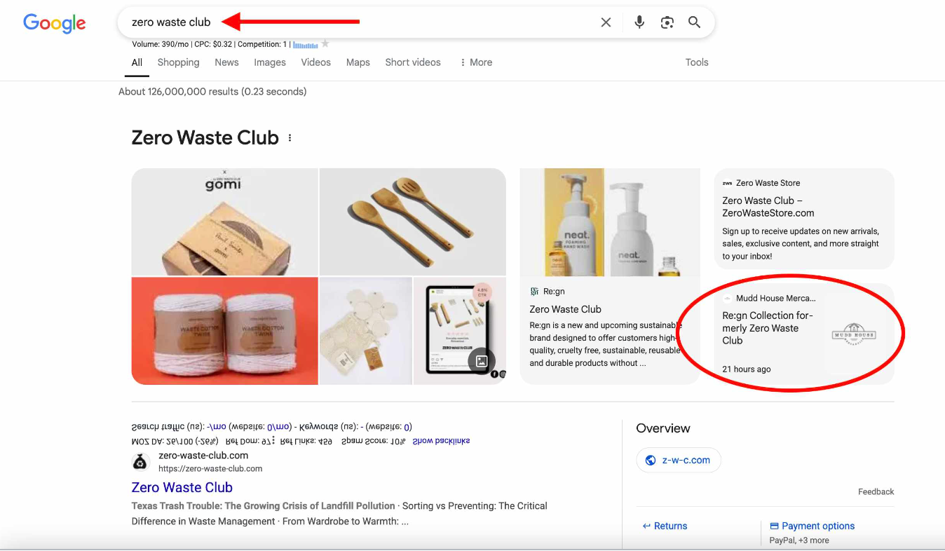 One of Mudd House Mercantile’s suppliers, formerly known as Zero Waste Club, recently rebranded to Re:gn. Instead of letting outdated pages linger, Katie (who runs Mudd House Mercantile) immediately made the necessary updates.